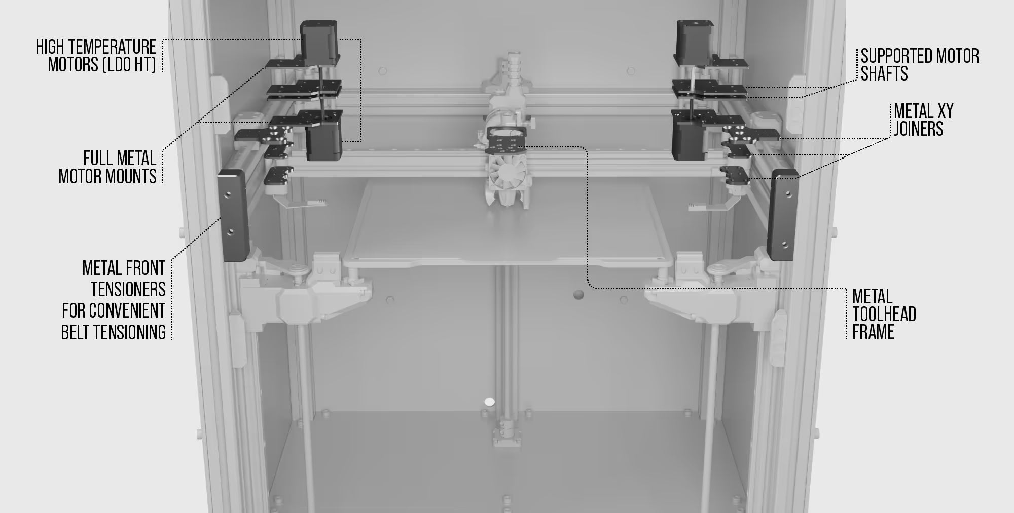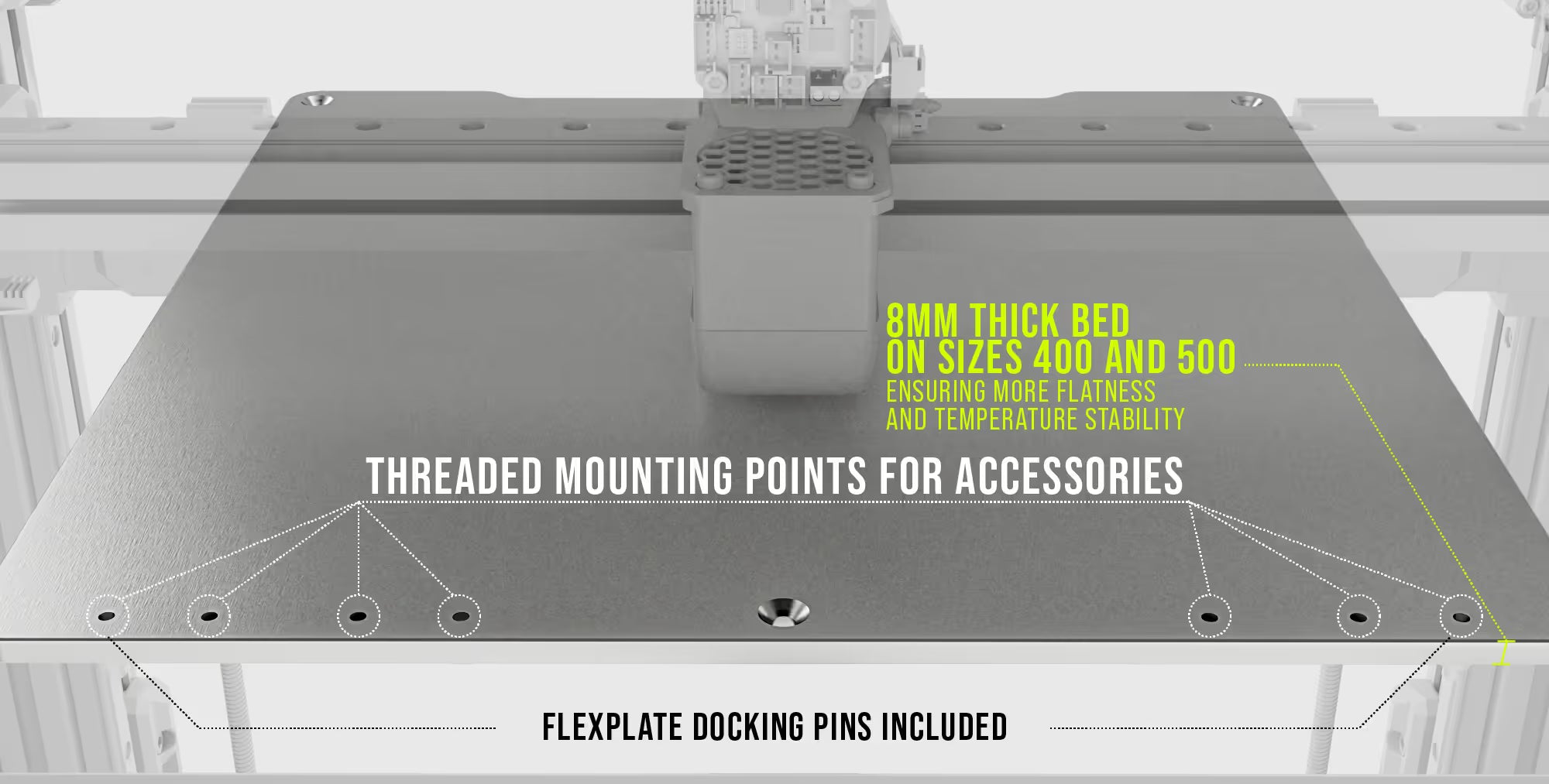 Machine Kit: Includes all structural, mechanical, and motion components, including all the bed elements (bedplate, flexplate and heater) This is the core of your build